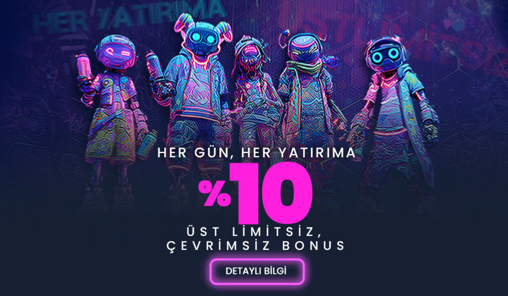 3. Kampanya boyunca her gün ve her yatırıma %10 Üst Limitsiz Çevrimsiz Casino Bonusu alınabilir.